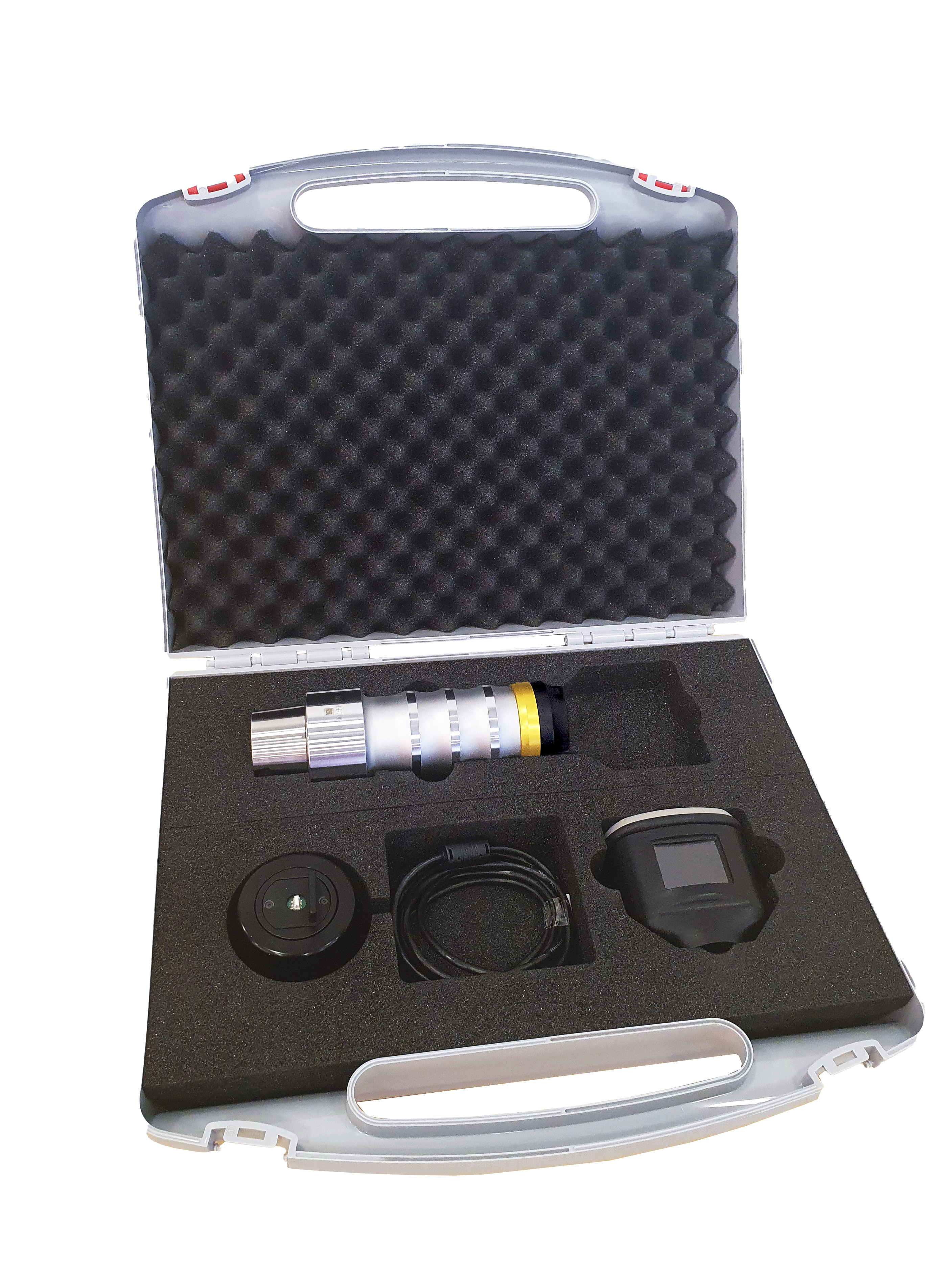 | Lieferumfang | - inkl. Displaymodul (kompatibel für alle vorhandenen Grundeinheiten) - inkl. Auswerte- / Ladeeinheit und Auswertesoftware - im Kunststoffkoffer verpackt - mit Protokoll |